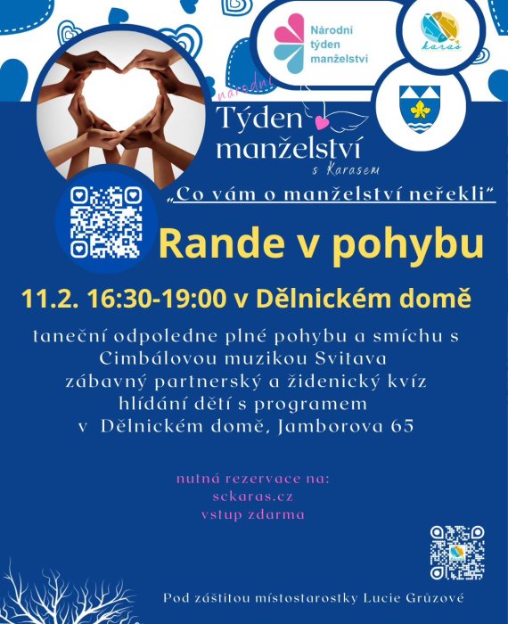 Hledáte způsob, jak osvěžit váš vztah, pobavit se a strávit kvalitní čas společně? V rámci národního týdne manželství vás srdečně zveme.